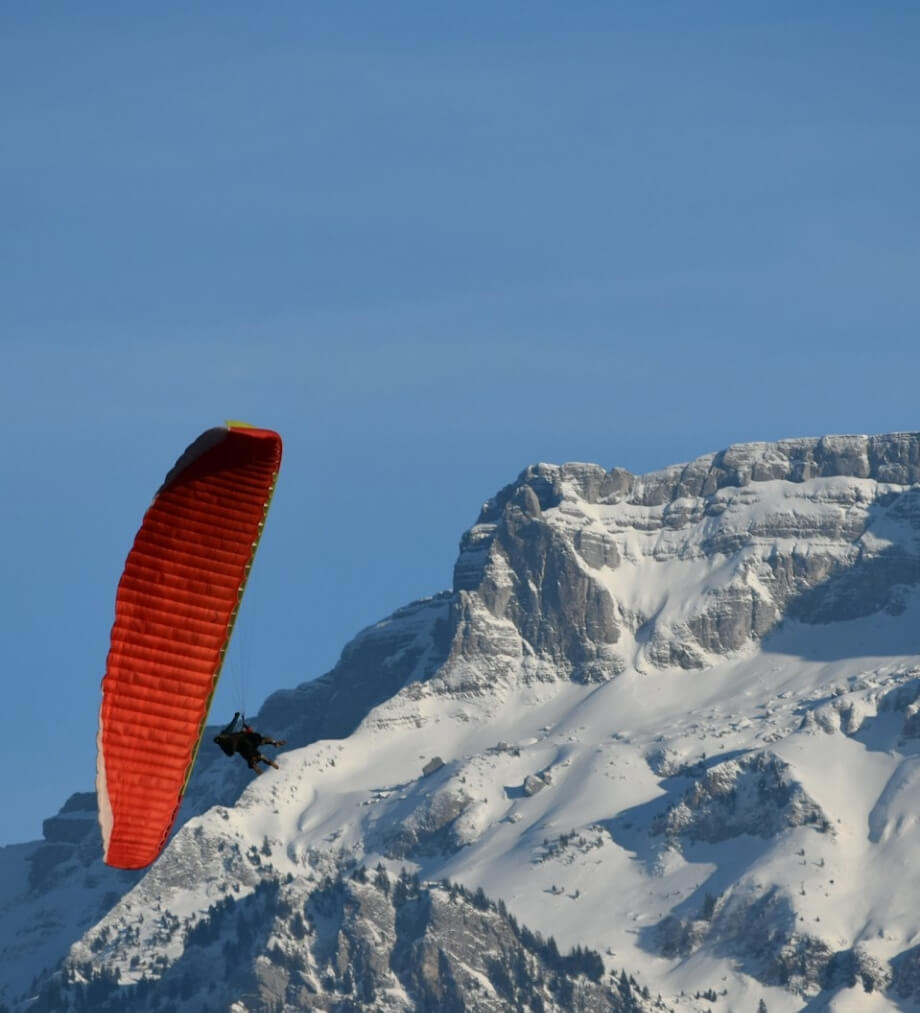 Take to the skies with winter paragliding in Champéry. Tandem flights with certified instructors let you enjoy the mountains from above, taking in the snow-covered peaks and valleys of the Portes du Soleil.